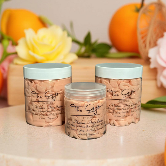 Discover the luxury of our Body Butter! Infused with vitamins A, E, and F, our formula delivers deep hydration, helping to firm and revitalize your skin for a radiant glow. Perfect for all skin types, it's packed with nourishing fatty acids that provide intense moisture and care. Achieve vibrant, healthy-looking skin today!