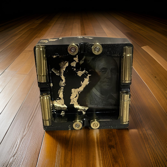 Elevate your smoking experience with our handcrafted Bullet Casing Ashtrays. Each piece is a distinctive blend of art and utility, ensuring no two are ever alike. Designed to make a statement, these ashtrays feature embedded details like bold 24k gold flakes, bullet casings, and striking currency imagery for a modern, edgy aesthetic.