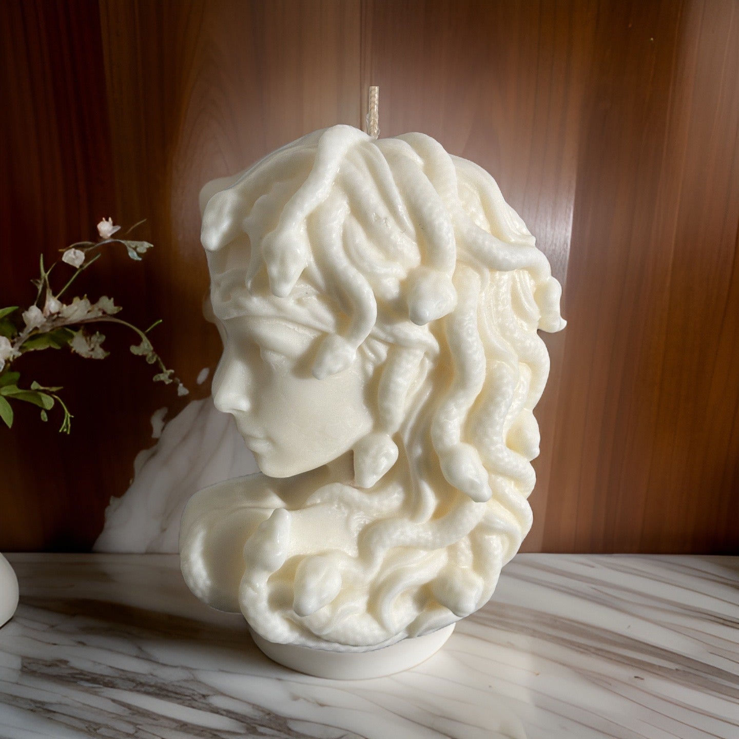 Introducing our second Medusa candle Mythic! This exquisite candle is a perfect blend of artistry and opulence. Cover your space in the enchanting glow of Medusa's intricate design, meticulously crafted to add a touch of sophistication to any setting. Elevate your ambiance with this unique piece that transcends the ordinary, embodying the essence of luxury in every detail.